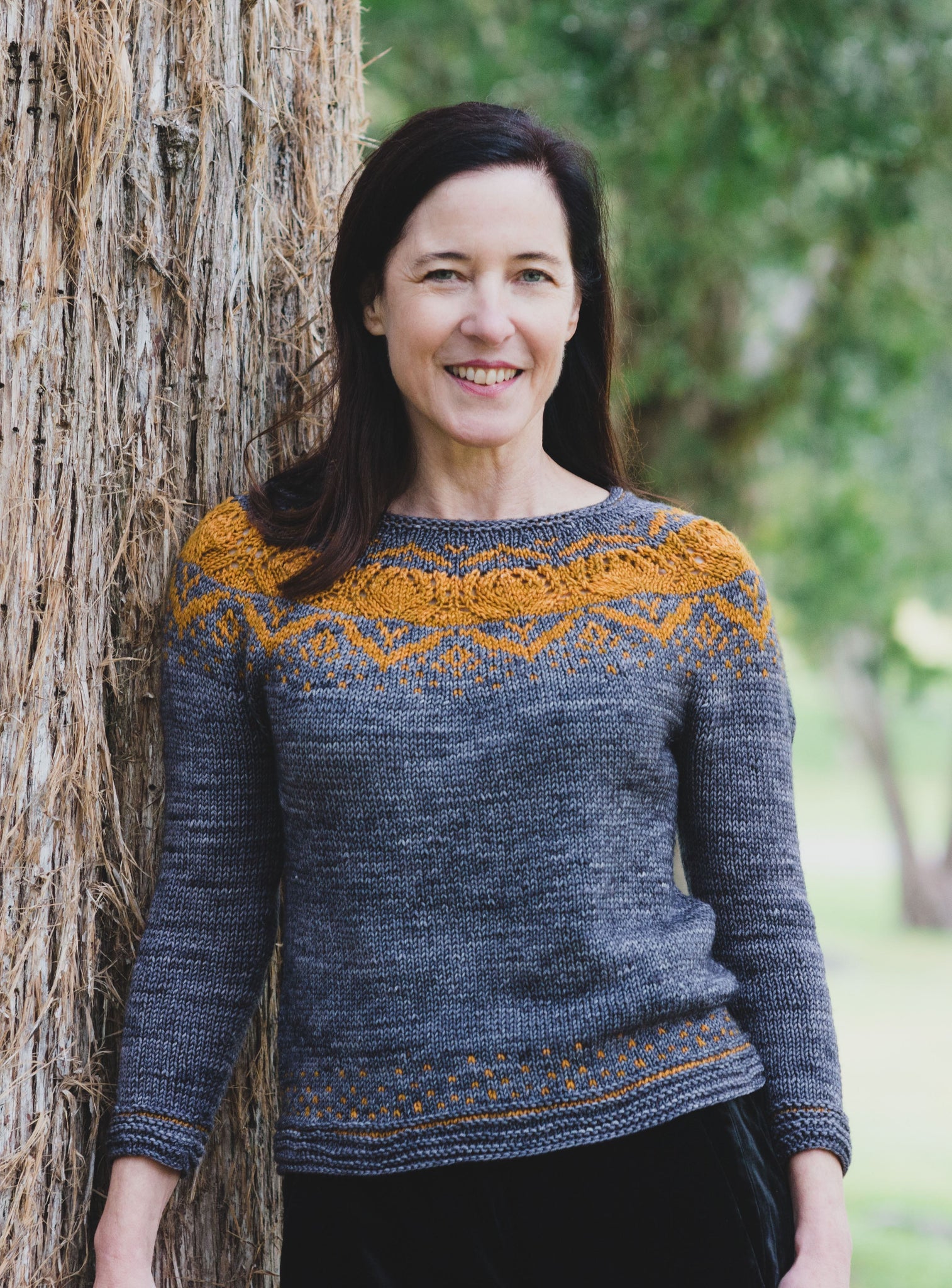 The Macy Grey Pullover was designed by Wood House Knits in our DK weight using Honeybadger and Maci Grey. Feel free to pick your own color combos or choose one of the ones we have put together. The pattern can be found here: